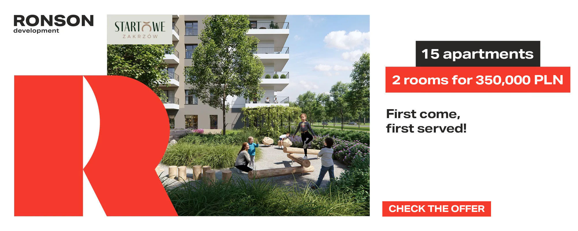 Prices start at just PLN 350,000 for a two-room apartment, making Startowe an attractive option for singles, young couples, families, and investors seeking rental properties.