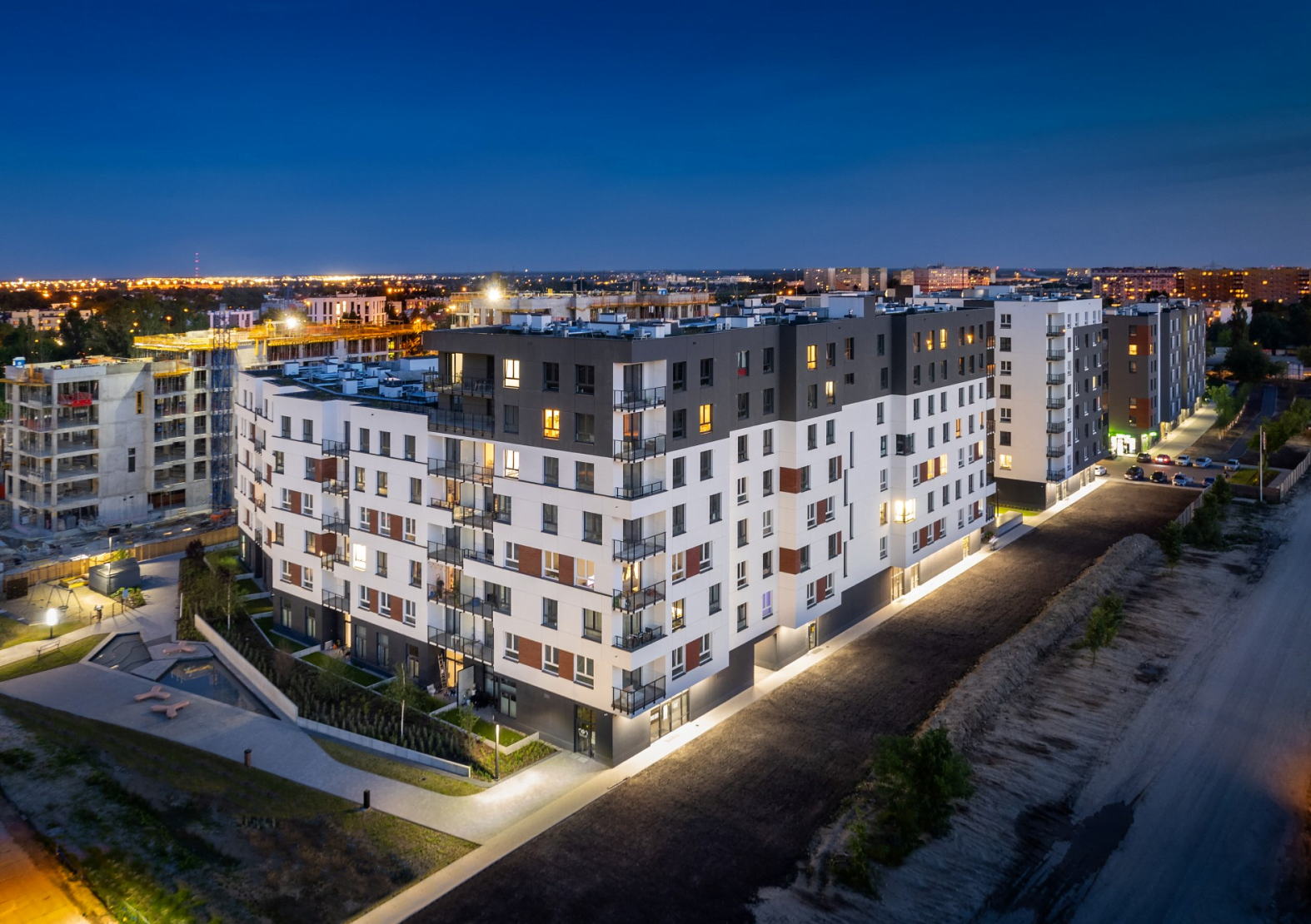 The concept of the estate was created by combining three pillars. An excellent location in the district center, proximity to a park, and the self-sufficiency of the estate, making it an ideal address for both singles and families with children. The investment will ultimately consist of 18 buildings with a diverse structure of apartments.