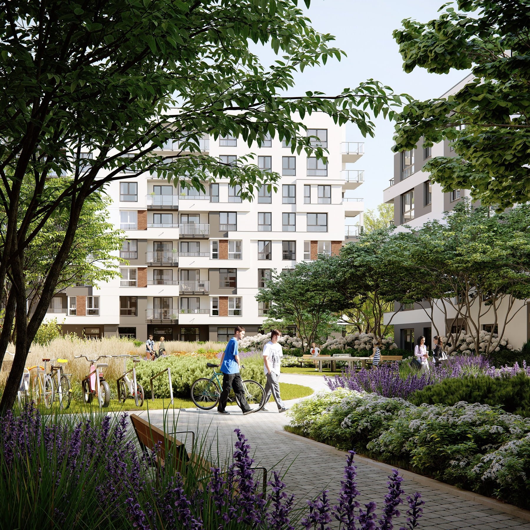 The boulevard is the heart of our community, providing residents with a unique place to meet and spend their free time. Here, without having to leave the neighborhood, you will find everything necessary for a comfortable life: from cafes and shops to outdoor gyms and places to relax among greenery and fountains.